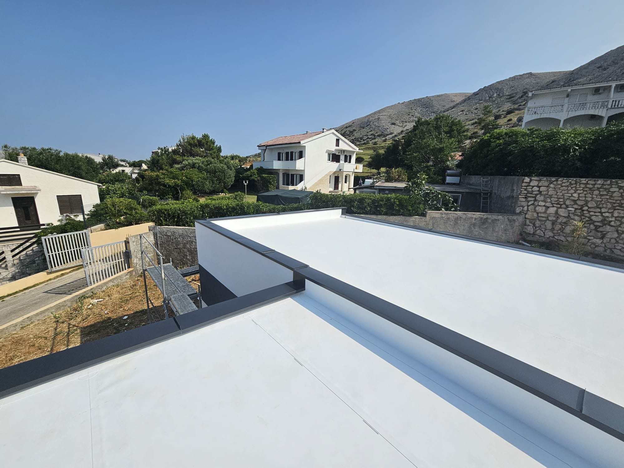 TPO membrane idealan su izbor za moderne ravne krovove koji zahtijevaju dugotrajnu zaštitu, visoku UV otpornost i čistu, estetski urednu završnu površinu. Membrana se zavaruje vrućim zrakom, što osigurava trajno vodonepropusne spojeve bez potrebe za otvorenim plamenom.